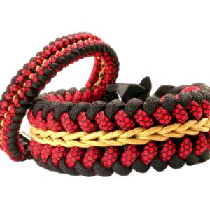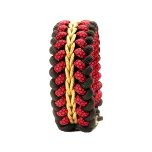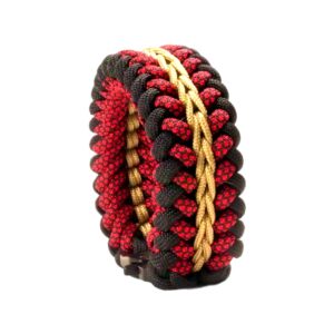 Matching Sanctified-style paracord bracelet set handcrafted in diamond red pattern and gold. Includes one wide bracelet and one slim companion bracelet. Handmade in the USA.