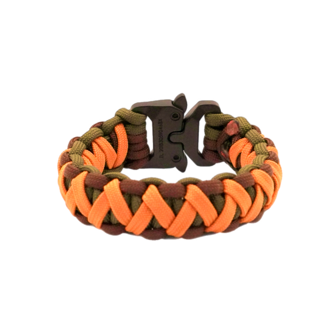 Its V-bar weave structure intertwines mustard with olive and dark brown paracord, creating a pattern inspired by survival, terrain, and adaptability. Designed for resilience, comfort, and timeless outdoor appeal, this bracelet embodies the raw strength of the Cobra series.